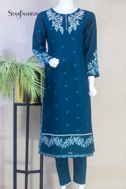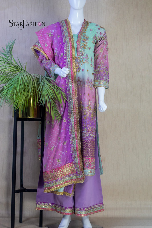 3-Piece Dress with Khaddi Dupatta & Palazzo