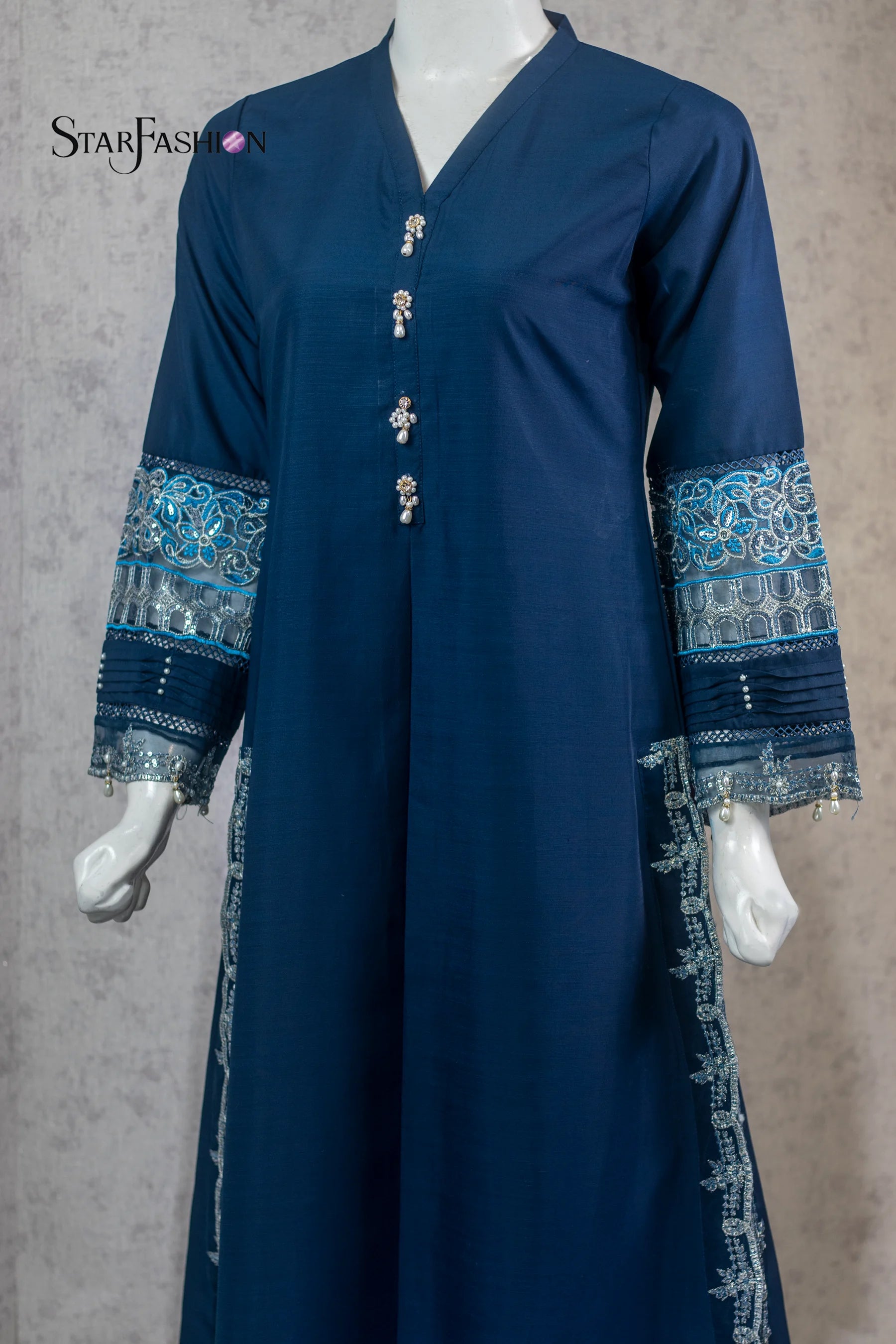 3-Piece Dress with Khaddi Dupatta & Palazzo